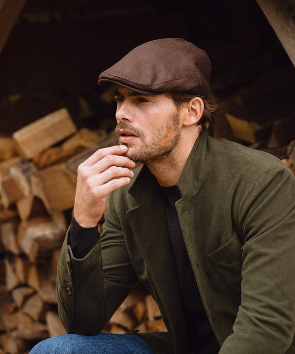 Balmoral flat Cap in cotton waxed fabric in Brown