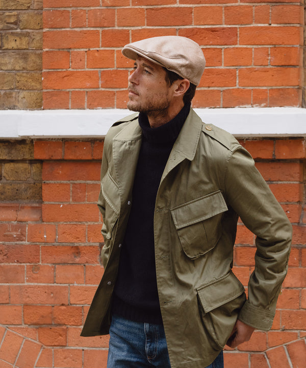 Balmoral flat cap in wool/linen fabric