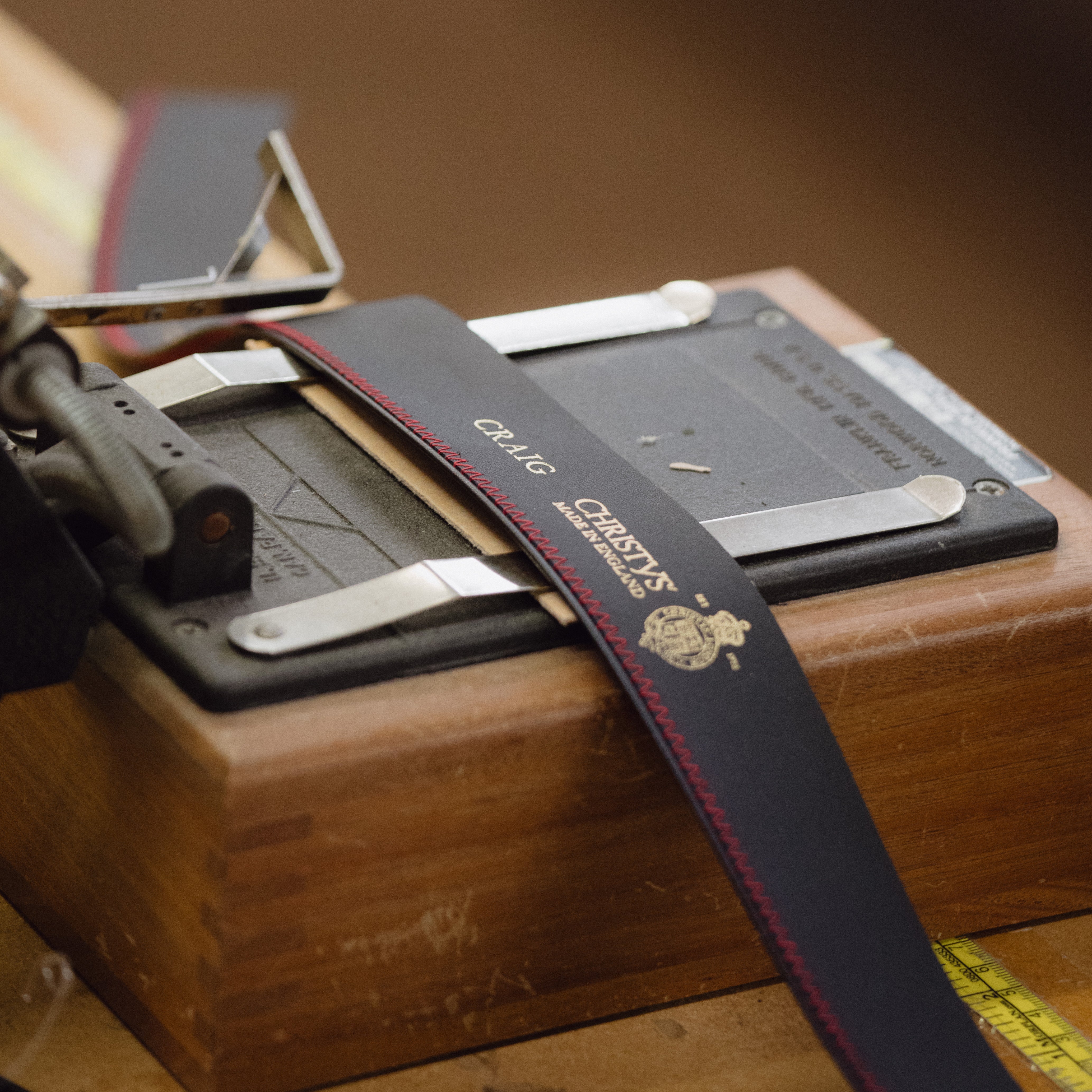 Personalise your hat with our exclusive monogramming service. Available for all our made to order Felts and Panamas. Christys' embossing is blocked using a traditional embossing machine by our hatmakers in our factory in Witney, Oxfordshire.